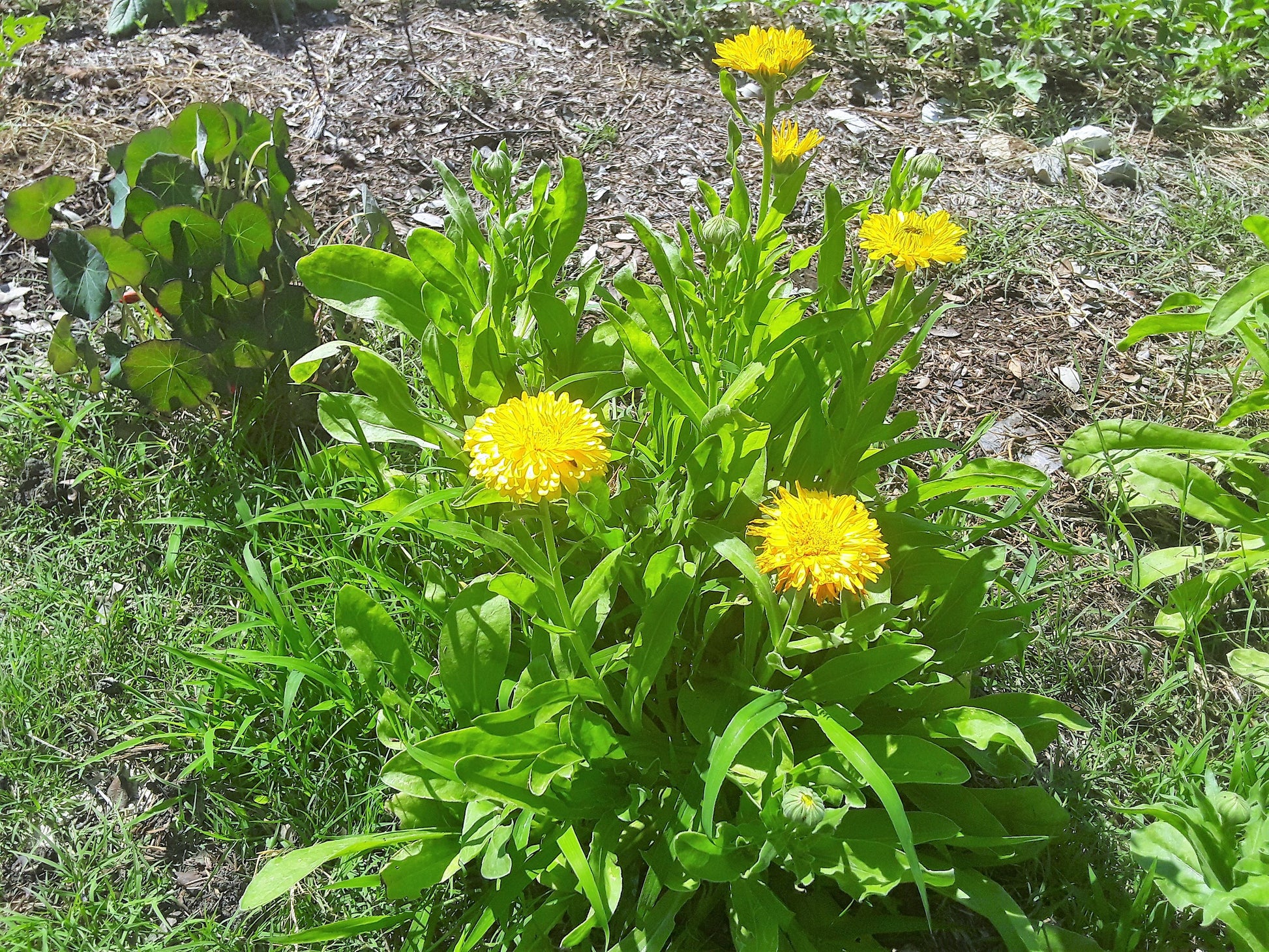 Although some people find the peppery taste of the Calendula somewhat bitter, the flowers and leaves can be used as edible flowers in salads and other recipes, either fresh or dried. The petals can also be used to create a rich yellow dye when they are fully open. To dry the flowers, spread out the cut flower heads on a screen in a dry, shady spot. Turn them occasionally until they are papery dry, then store them in canning jars until ready to use.