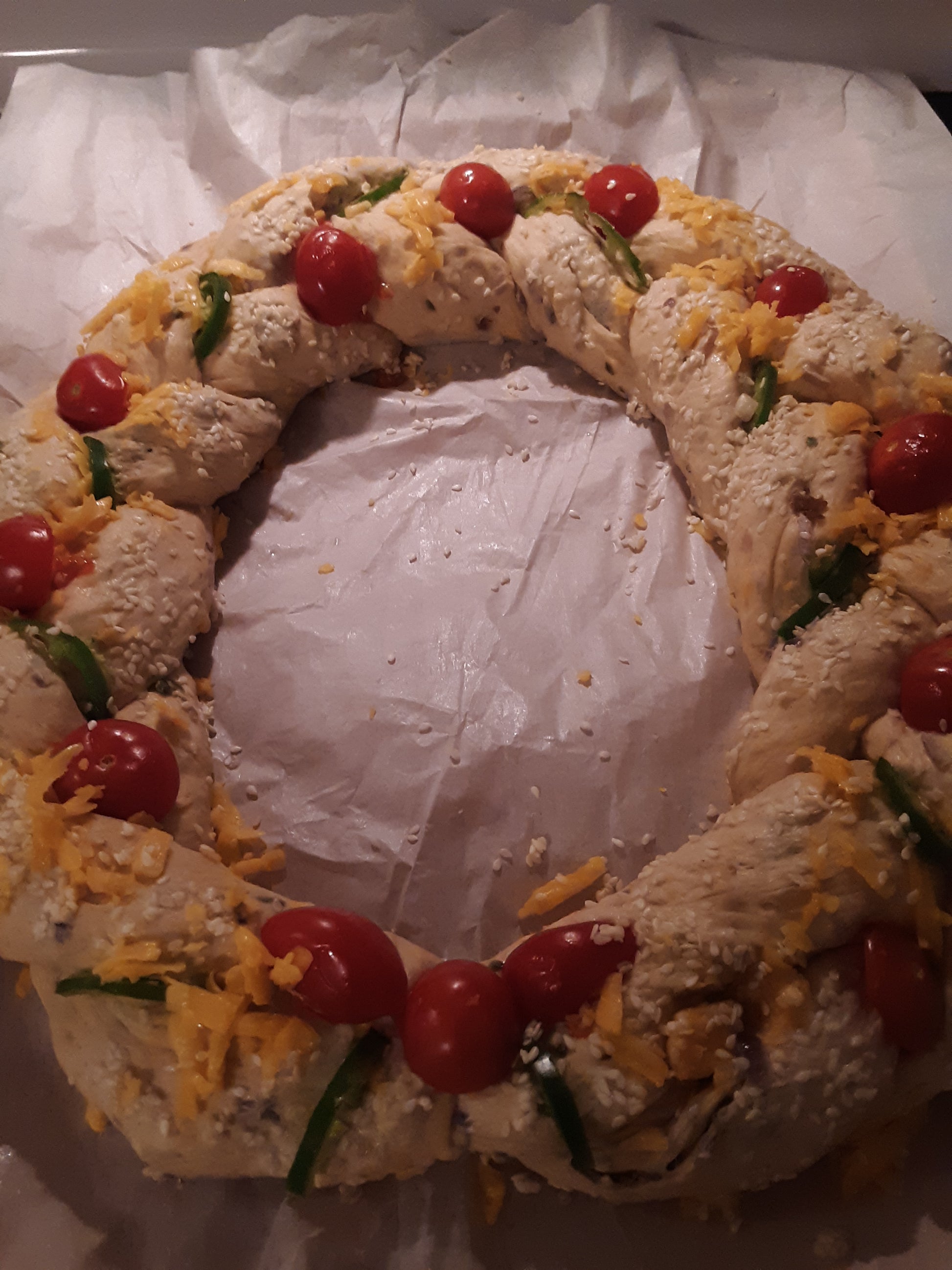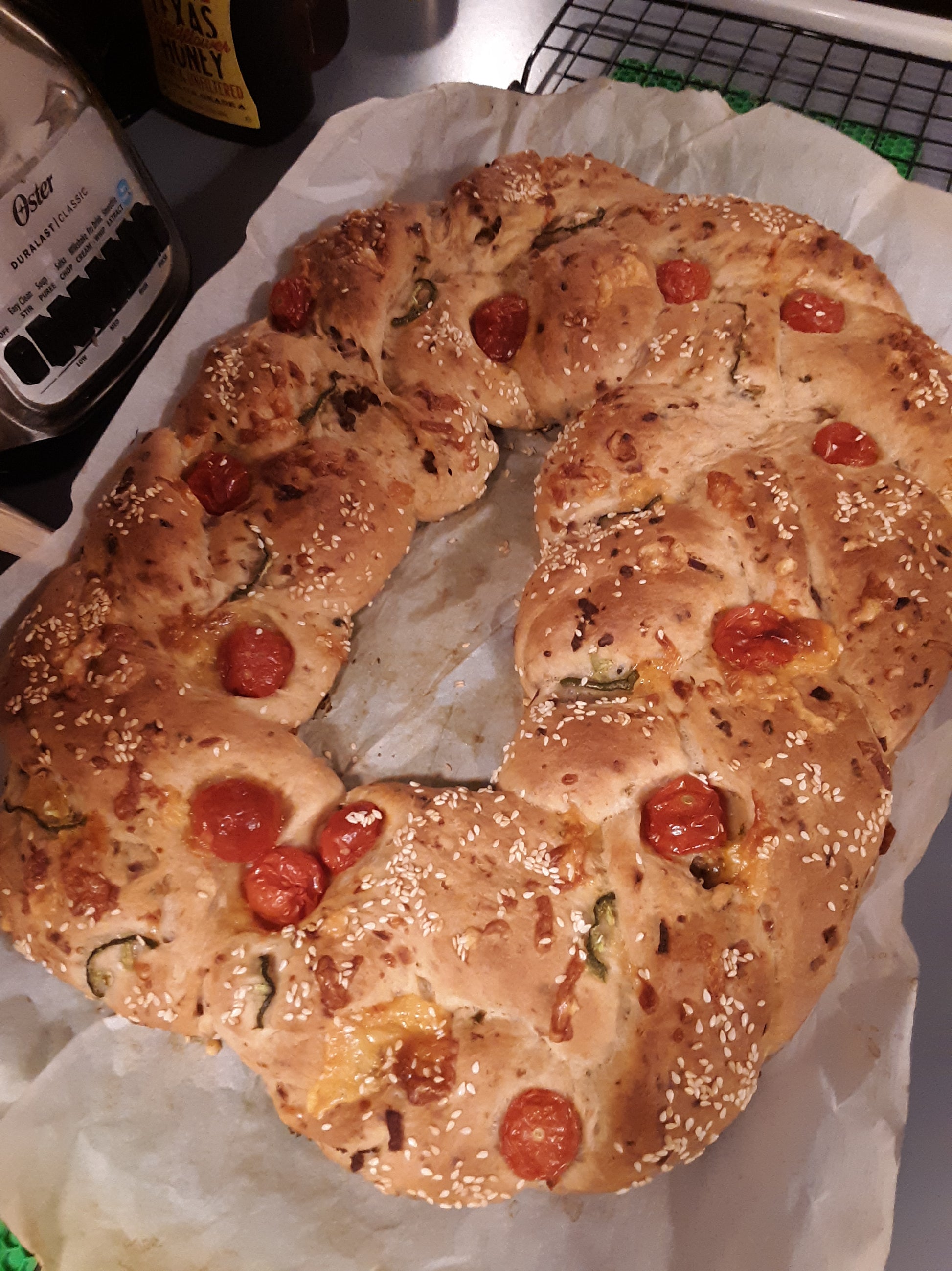 *my sourdough sausage, cheese, jalapeno, cherry tomatoes bread
