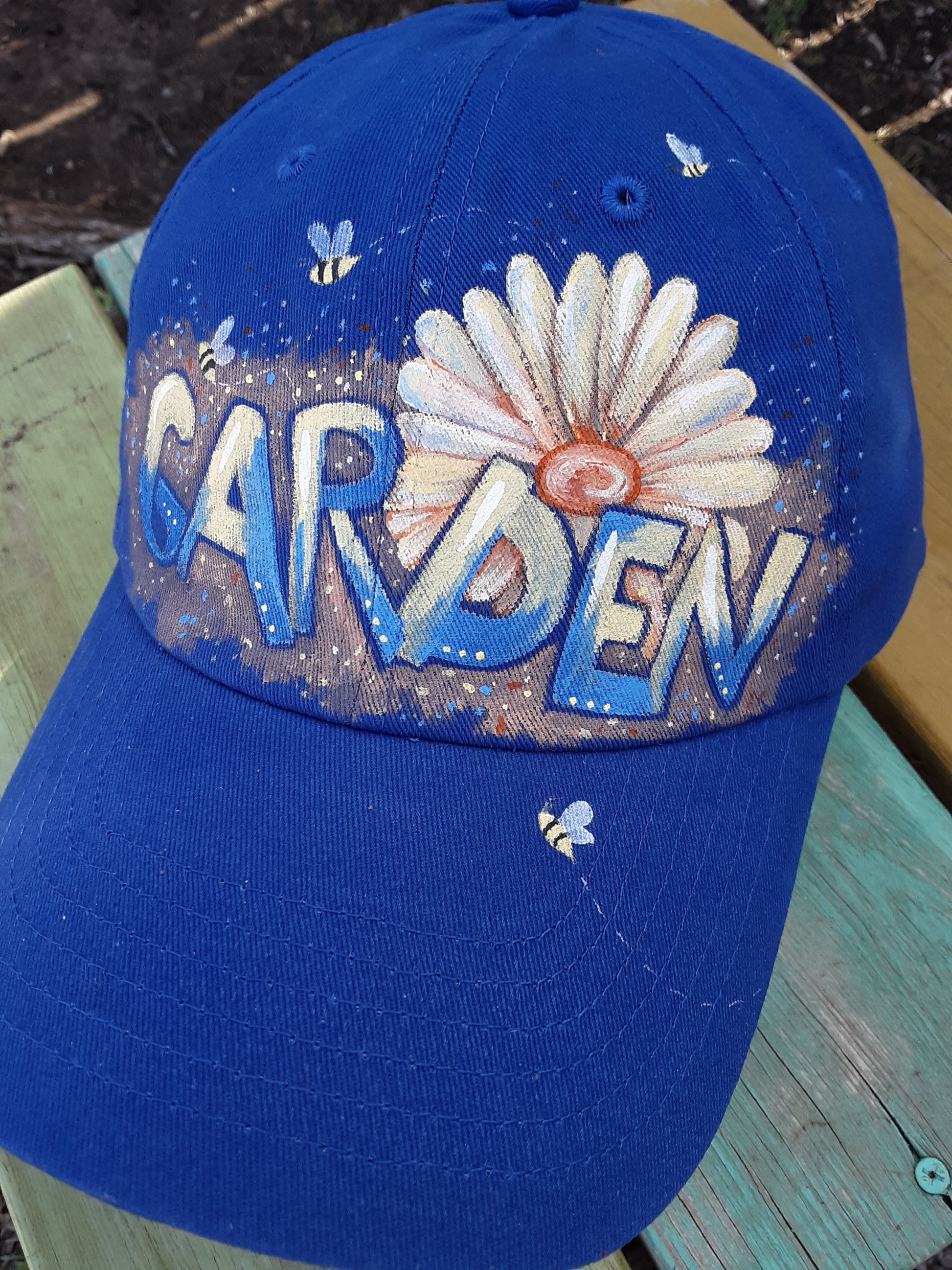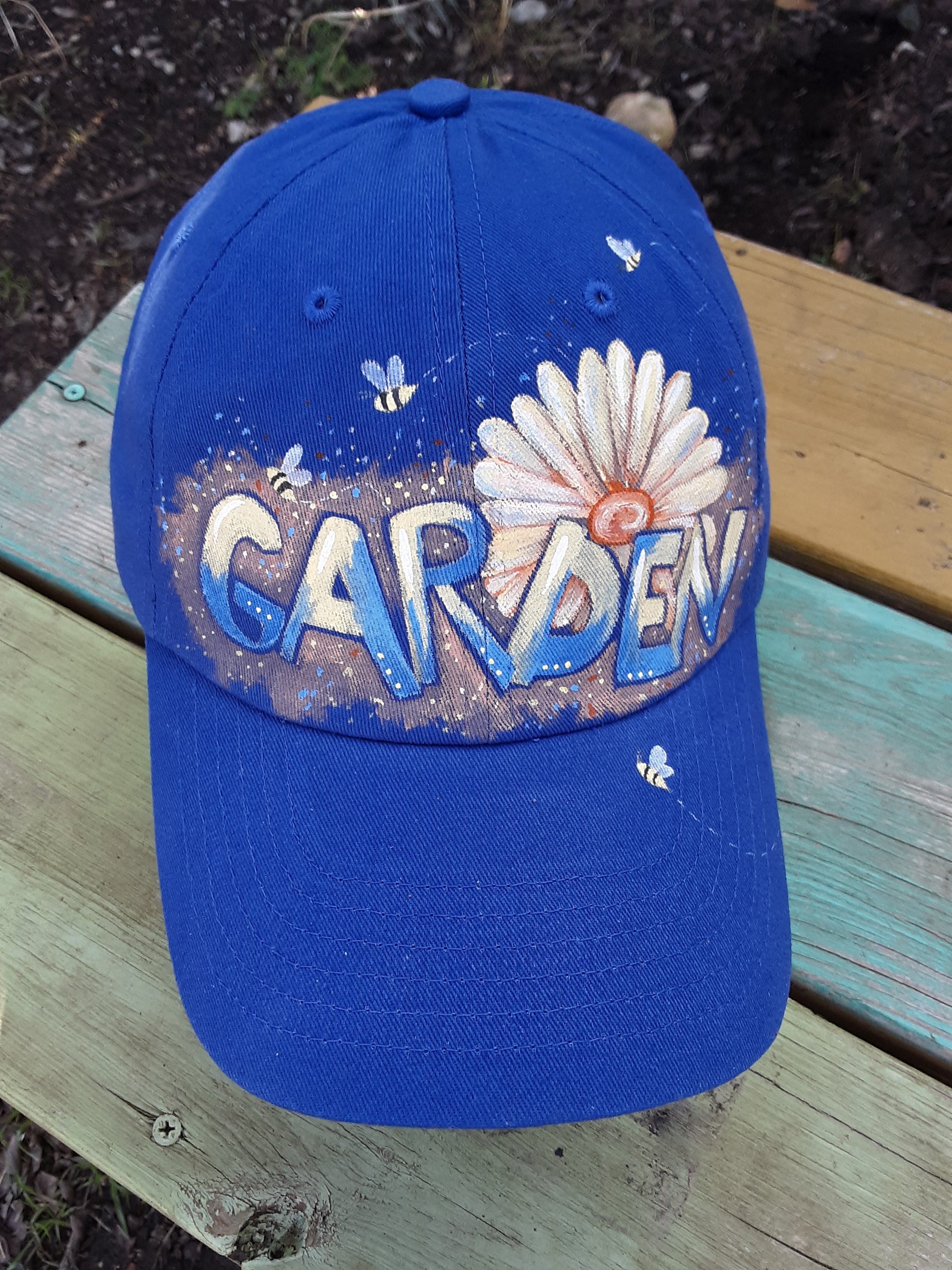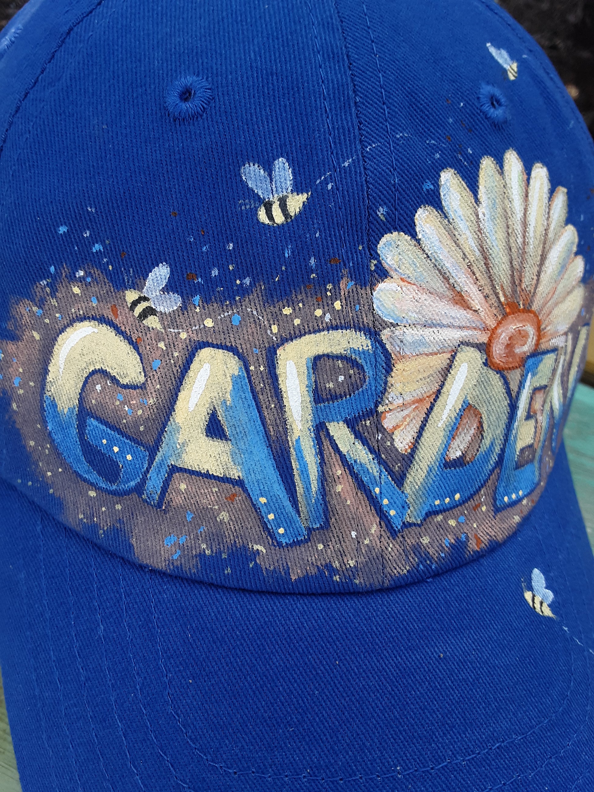 Protect yourself from sun and look stylish while gardening with this Graffiti Garden Baseball Cap. This bright blue cap features the word Garden on front and is perfect for the garden enthusiast. Its pre-curved brim and adjustable hook and loop closure make for a comfortable fit for average head size.