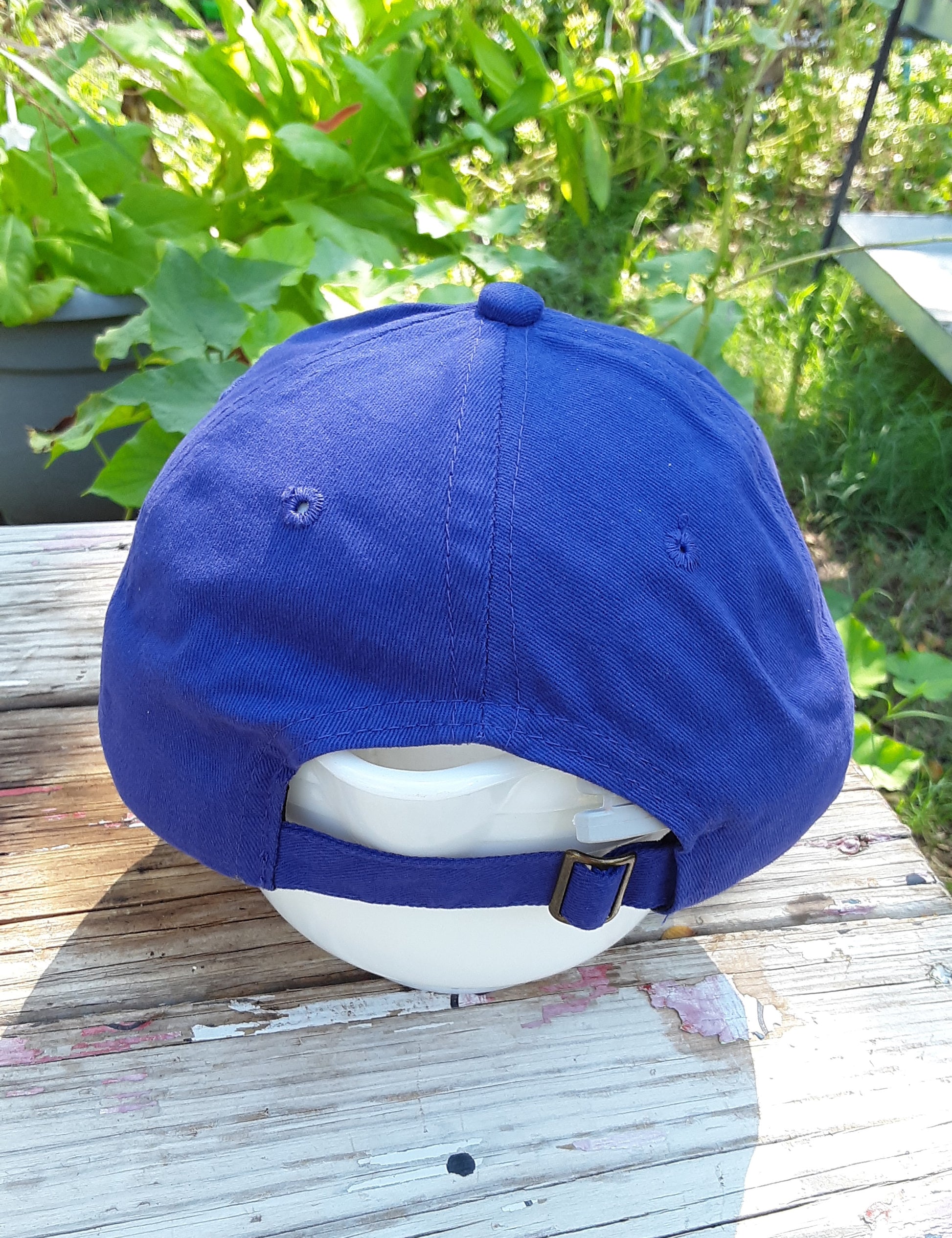 The cap is a 6 Panel Ball Cap, cloth adjustable strap in back.