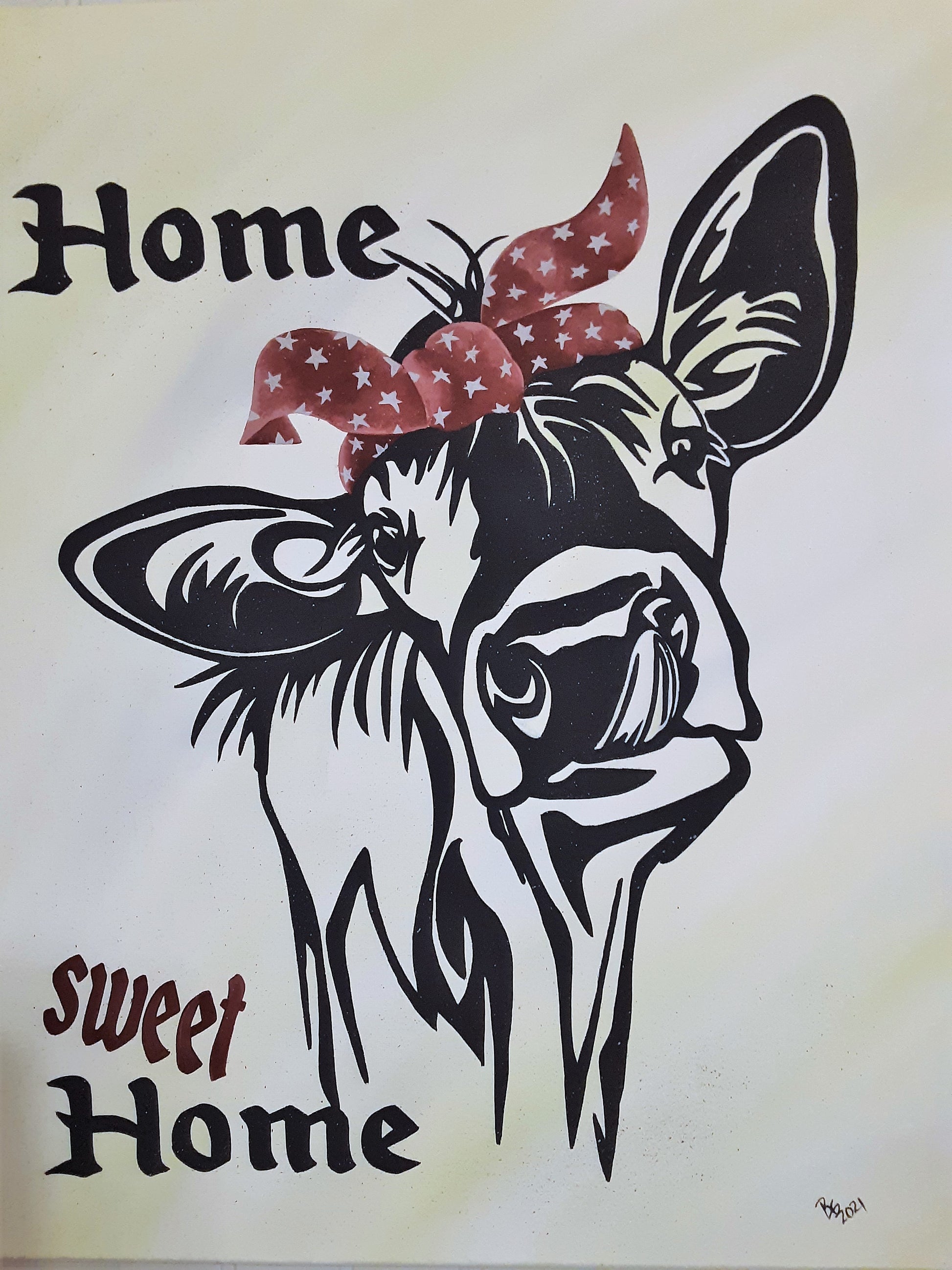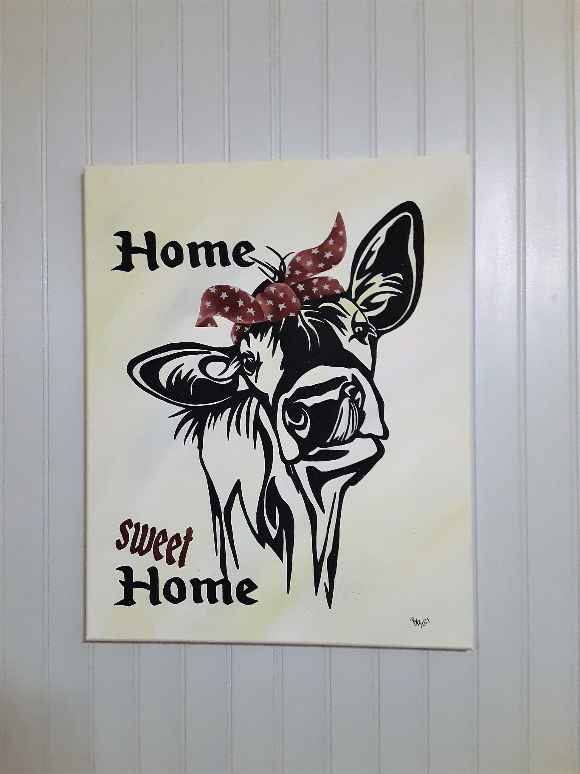 Acrylic painting 16" x 20" stretched canvas. The font words are "Home Sweet Home" and the background is a blended mix of off white and a touch of yellow paint colors.