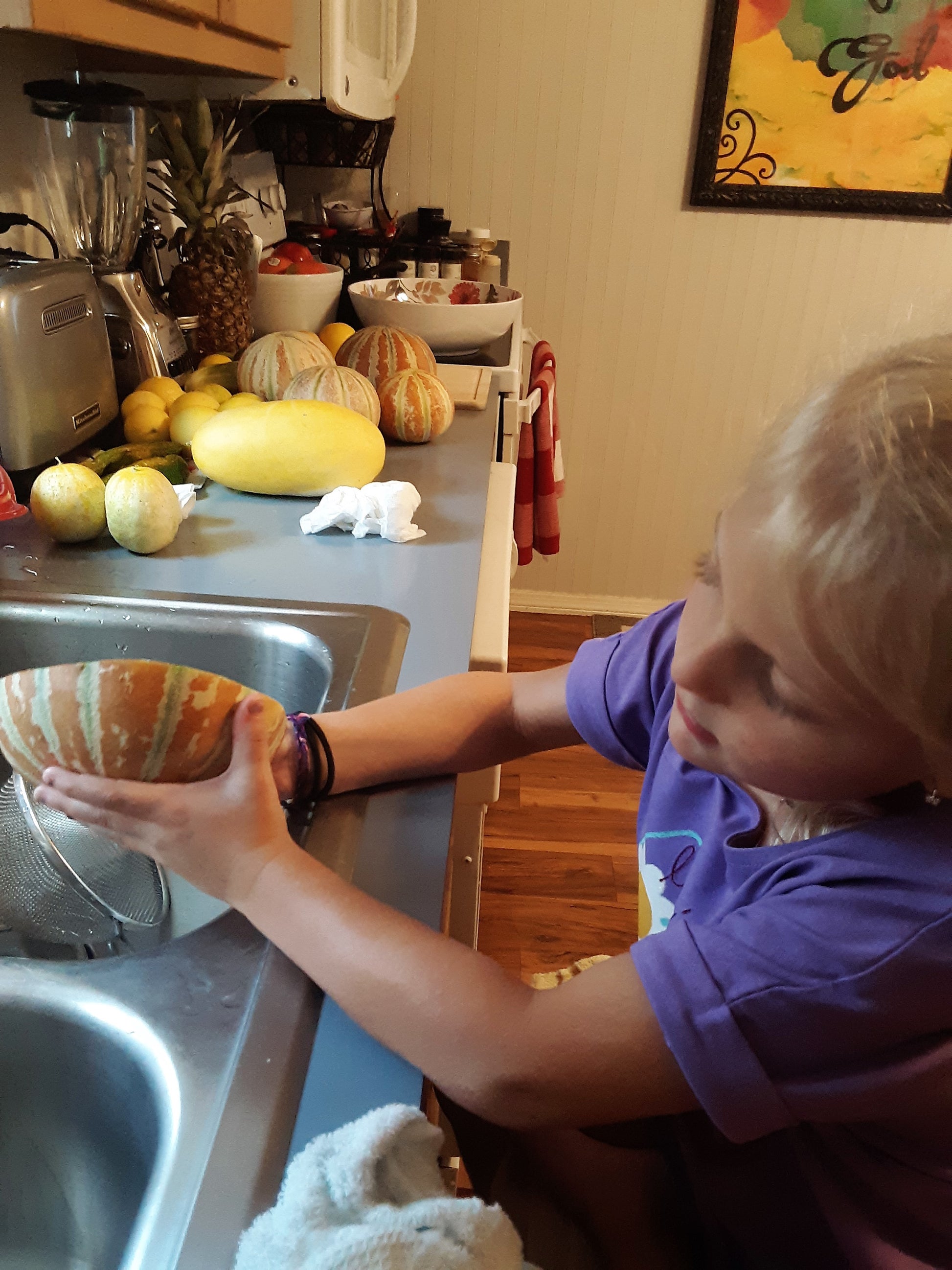 Vines produce heavily and should be cut back to encourage ripening. Fruits are about 2 lbs and change color when ready to harvest, from green to orange.