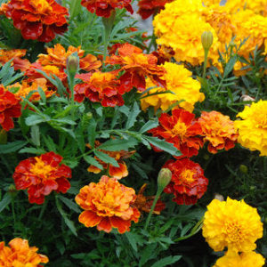 This dwarf variety features beautiful mixed color blooms that will brighten up your entire flower garden from late spring through summer and right up until frost season. Grown from Marigold seeds, these annuals are tireless bloomers with blooms that are a flat pom-pom shape. The flowers have masses of tiny petals that are curled and frilly making a highly textured bloom. The colors make a dazzling display in the garden, window boxes, border, or in a container.