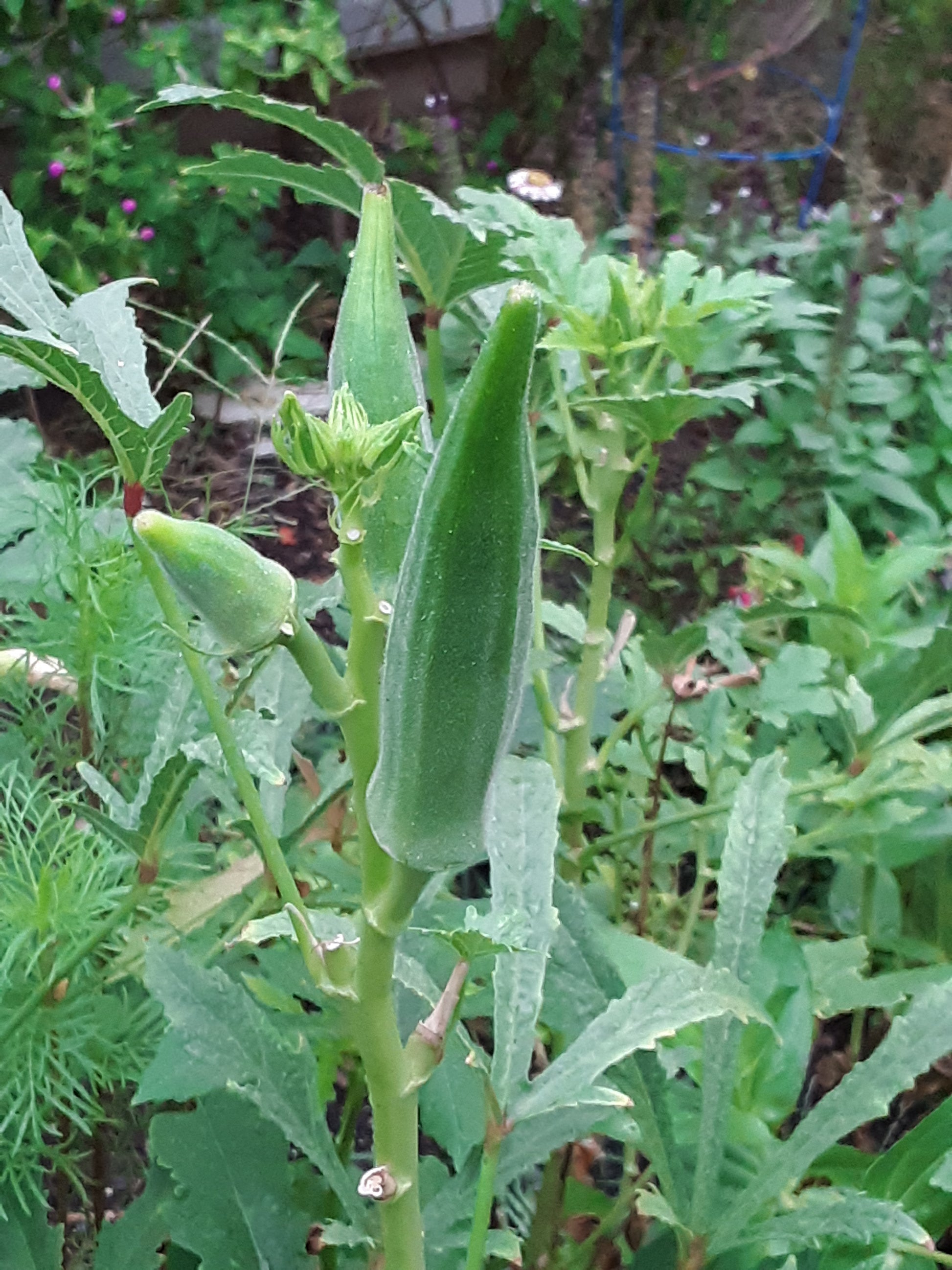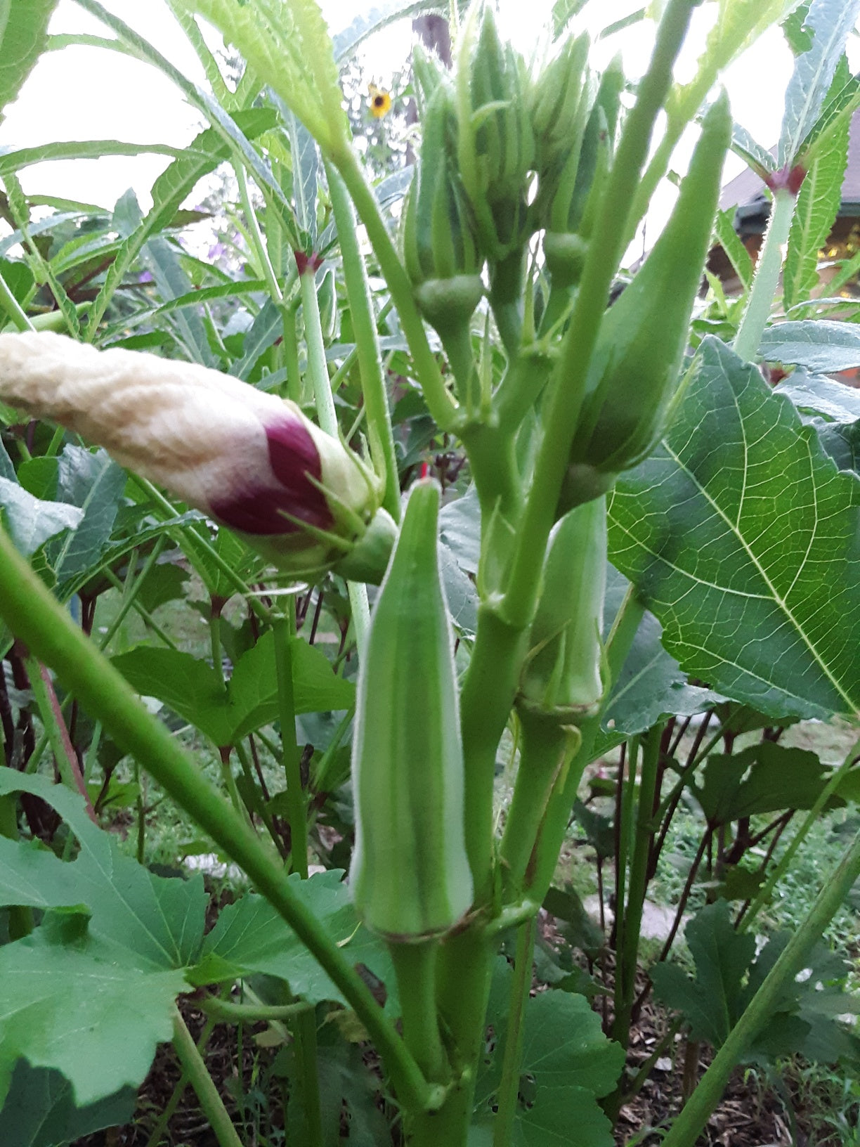 To enjoy more tender okra, pick the okra when it's roughly 3" long. This variety of okra is a heavy producer that can be picked regularly.