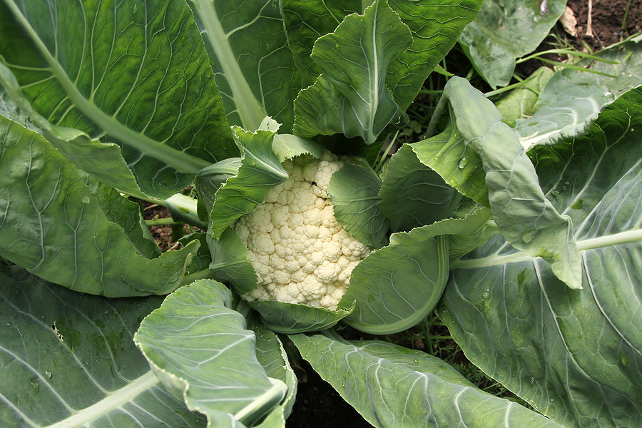 Smooth (approx) 6" heads of tightly formed white curds are solid, crisp, and tender. This variety is well-suited to being eaten raw, baked, roasted, or steamed. Can be overwintered for an early crop in warmer regions. Approx. 60-85 days from transplant.