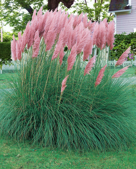 You can enjoy fresh green foliage topped by long, thick dusty-pink plumes when you grow Pampas Grass seeds. These elegant ornamental grasses have "feather duster" plumes from late summer and throughout the fall! The plumes are often cut and dried for indoor use, or they can be left on the plant for wonderful winter interest. Ornamental Pampas Grass is not only attractive, but it also is very functional. It can be a stunning specimen plant in large landscapes, or it can be used to create screens or borders. These large ornamental grasses do need lots of room.