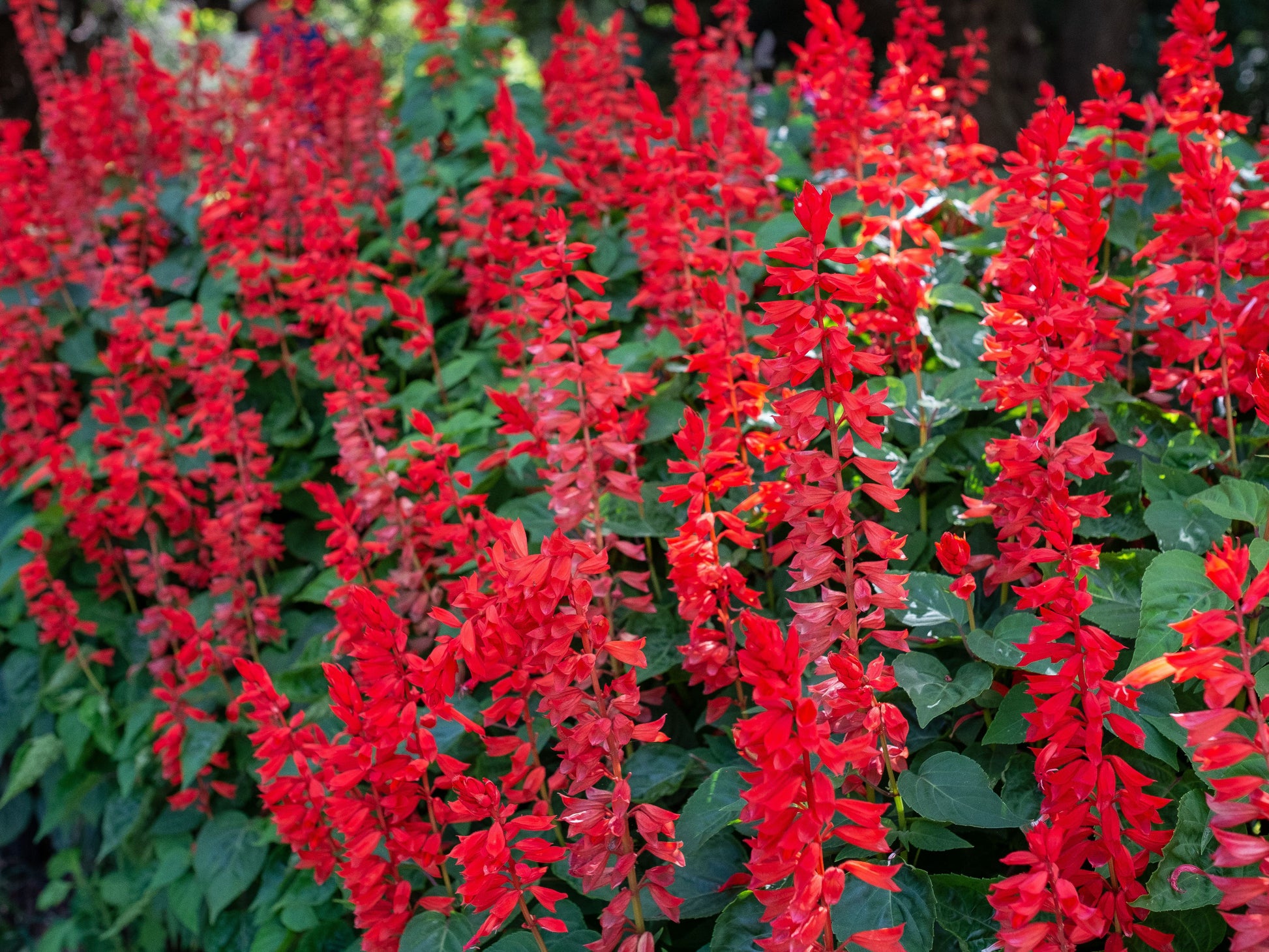 If you want a head-turning display of dramatic red blooms, grow Scarlet Salvia Sage wildflower seeds, and have not only a beautiful display but a versatile plant that takes the heat well. Scarlet Salvia Sage is a perennial in warmer climates and an annual where winter temperatures stay below freezing for more than a few hours at a time. The Salvia plant reaches 24 - 36 inches tall, with 1 - 2 inch triangular leaves growing opposite each other on a square stem. The Scarlet Sage flower is very showy, bright red, about an inch long, and arranged in loose whorls along the upright spikes. Blooms appear continuously from early summer to first frost. Trim them back and a new flush of blooms will appear. Hummingbirds cannot leave these magnificent blooms alone. Growing Scarlet Salvia Sage seeds is greatly rewarding!