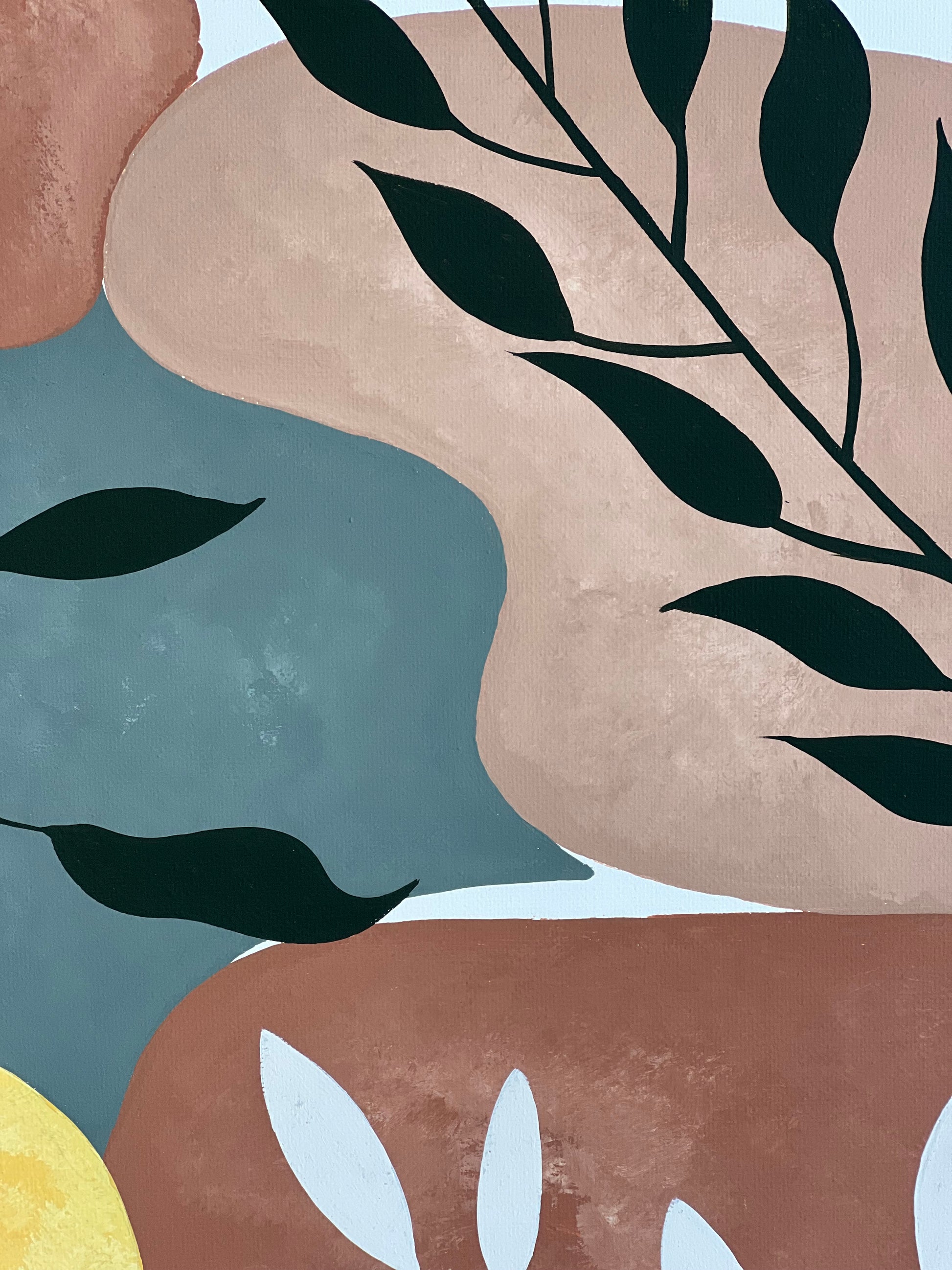 Acrylic paints were used to create this Minimalism painting, size 16" x 20" stretched canvas. There are two more paintings that would go well with this one.