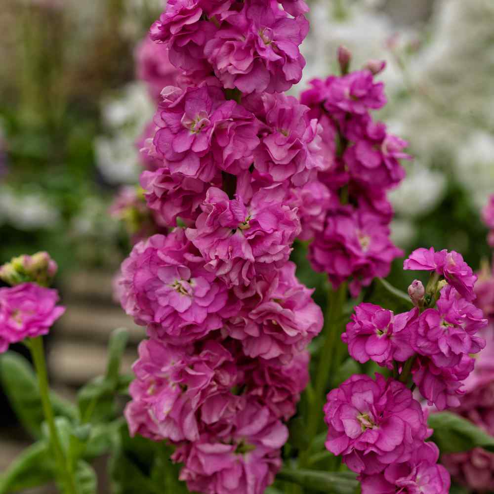 These lovely annuals grown from seeds have been popular garden flowers for centuries. In Britain, they date back to the 1500s and were called Gilliflowers. They were known for their sweet fragrance and woody "stock" or stem. This deep rose colored Matthiola Incana flower makes a breathtaking display of cool season color. Up to 60% of the plant will be covered with the gorgeous blooms!