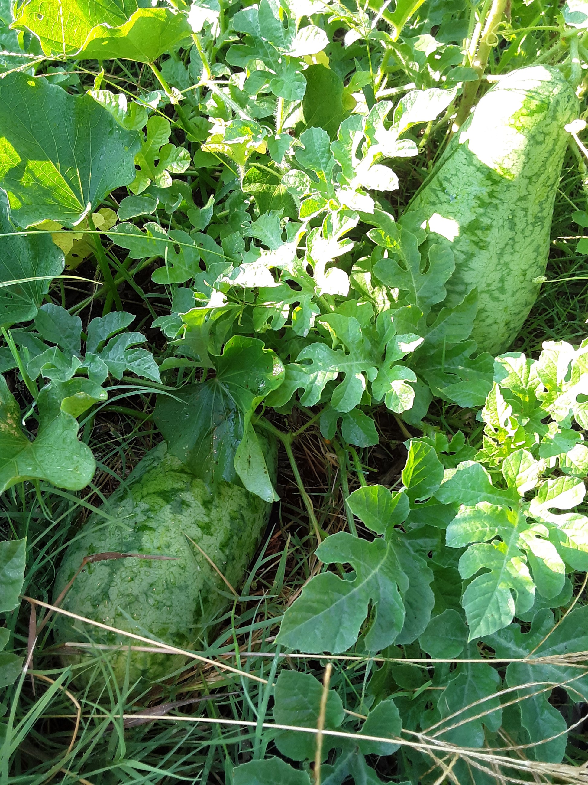 Watermelon plants have moderately deep roots and watering is seldom necessary unless the weather turns dry for a prolonged period. When vines begin to ramble, side dress plants with a balanced fertilizer (5-10-5). A second application of fertilizer should be made when melons are set (the fruit is forming). Withhold water as melons start to mature to intensify sweetness.