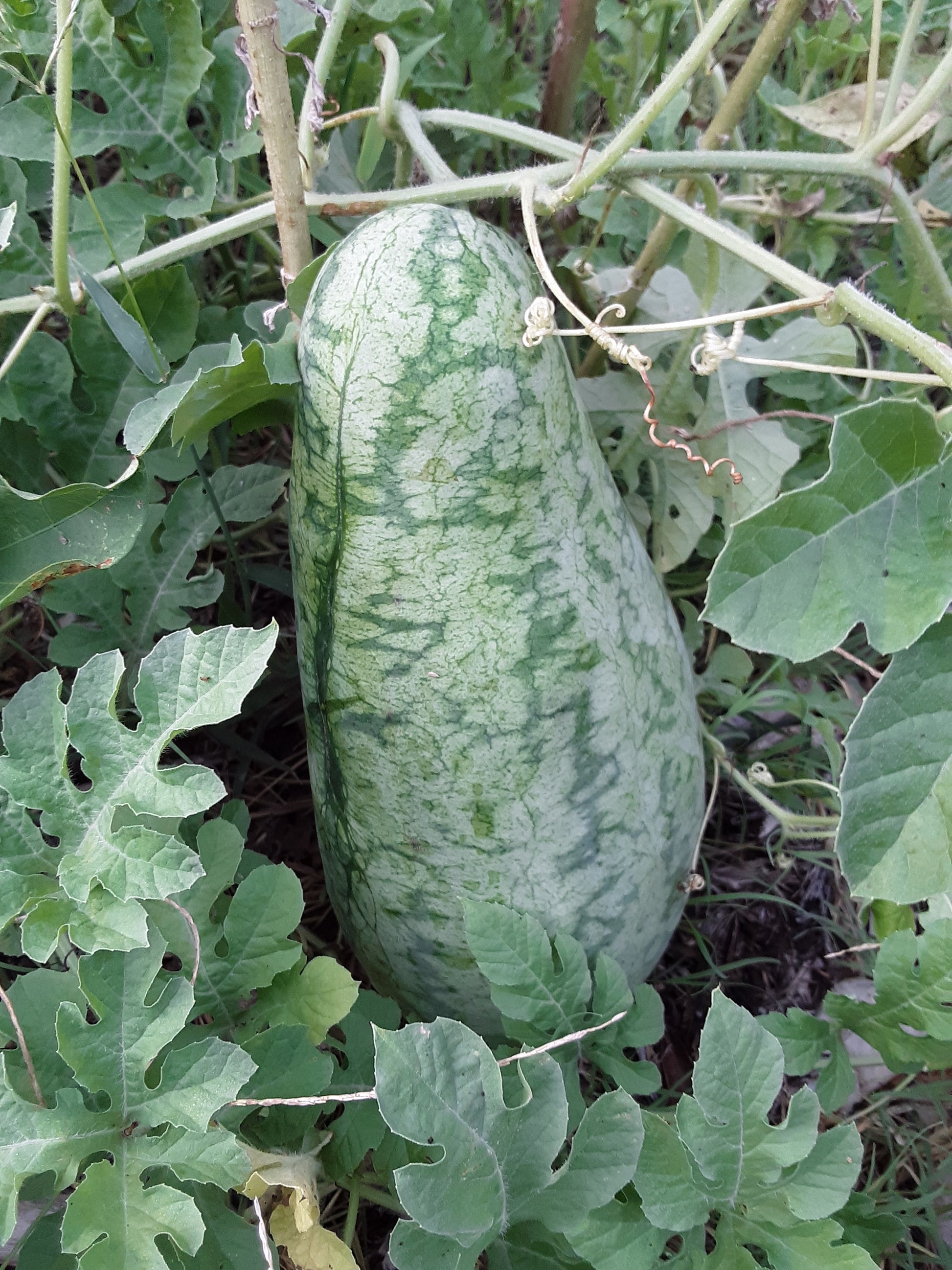 Knowing how to determine when a watermelon is perfectly ripe is not easy. One way favored by many gardeners is to watch the tendril closest to the melon stem.  A tendril is a modified leaf or stem in the shape of slender, spirally coil. When it turns brown and dries up, the melon is ripe. The trouble with this method is that with some watermelon varieties, the tendril dries and drops off more than a week before the melon is fully ripe. Slapping and tapping or thumping are other common methods used to determine ripeness, but they are not always accurate.