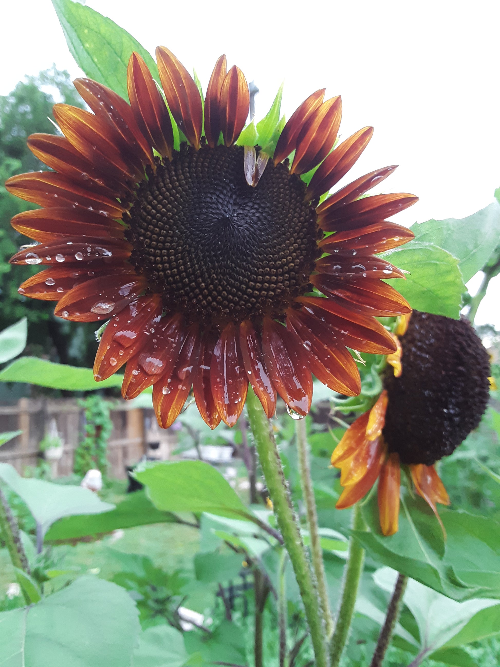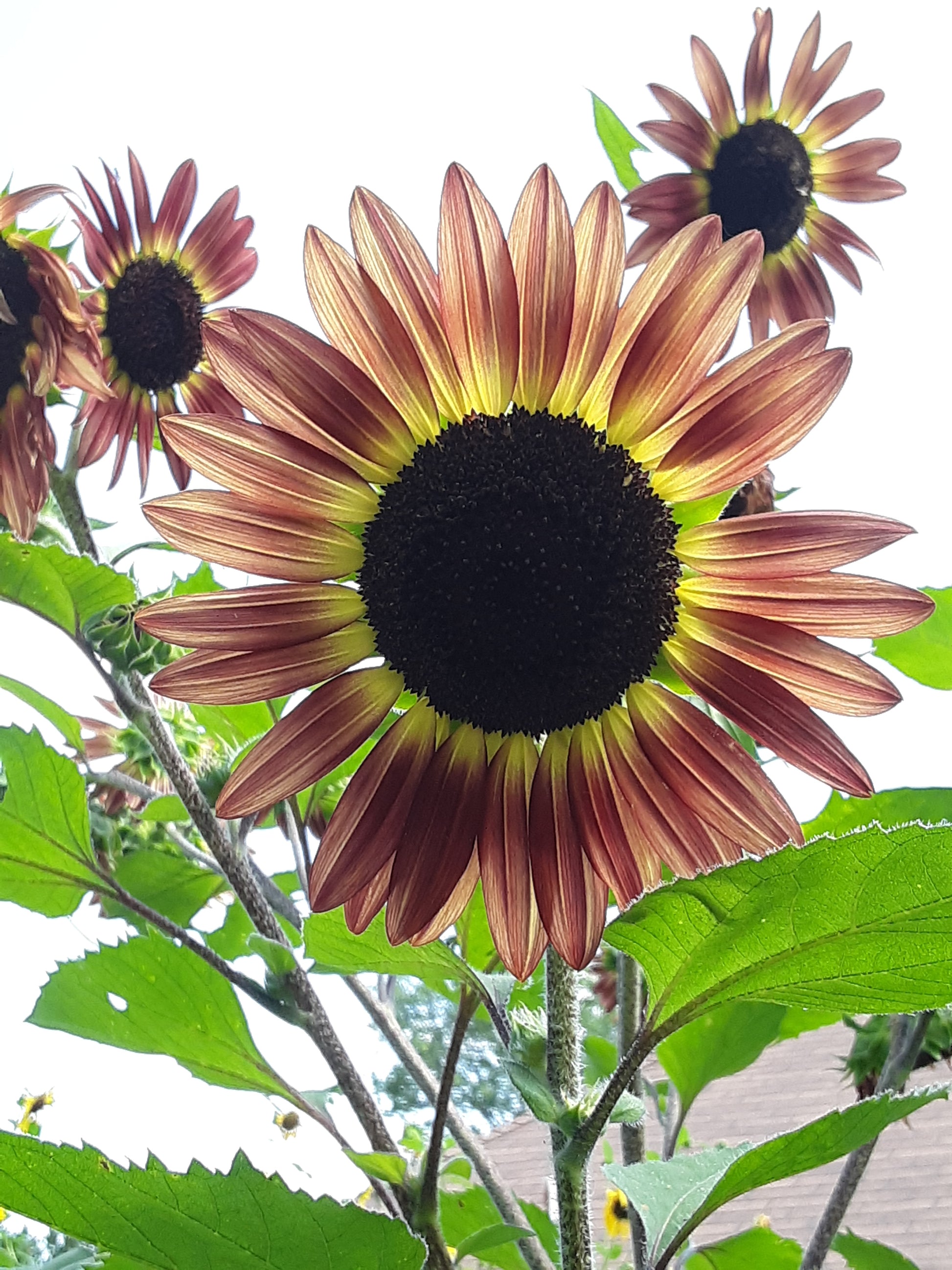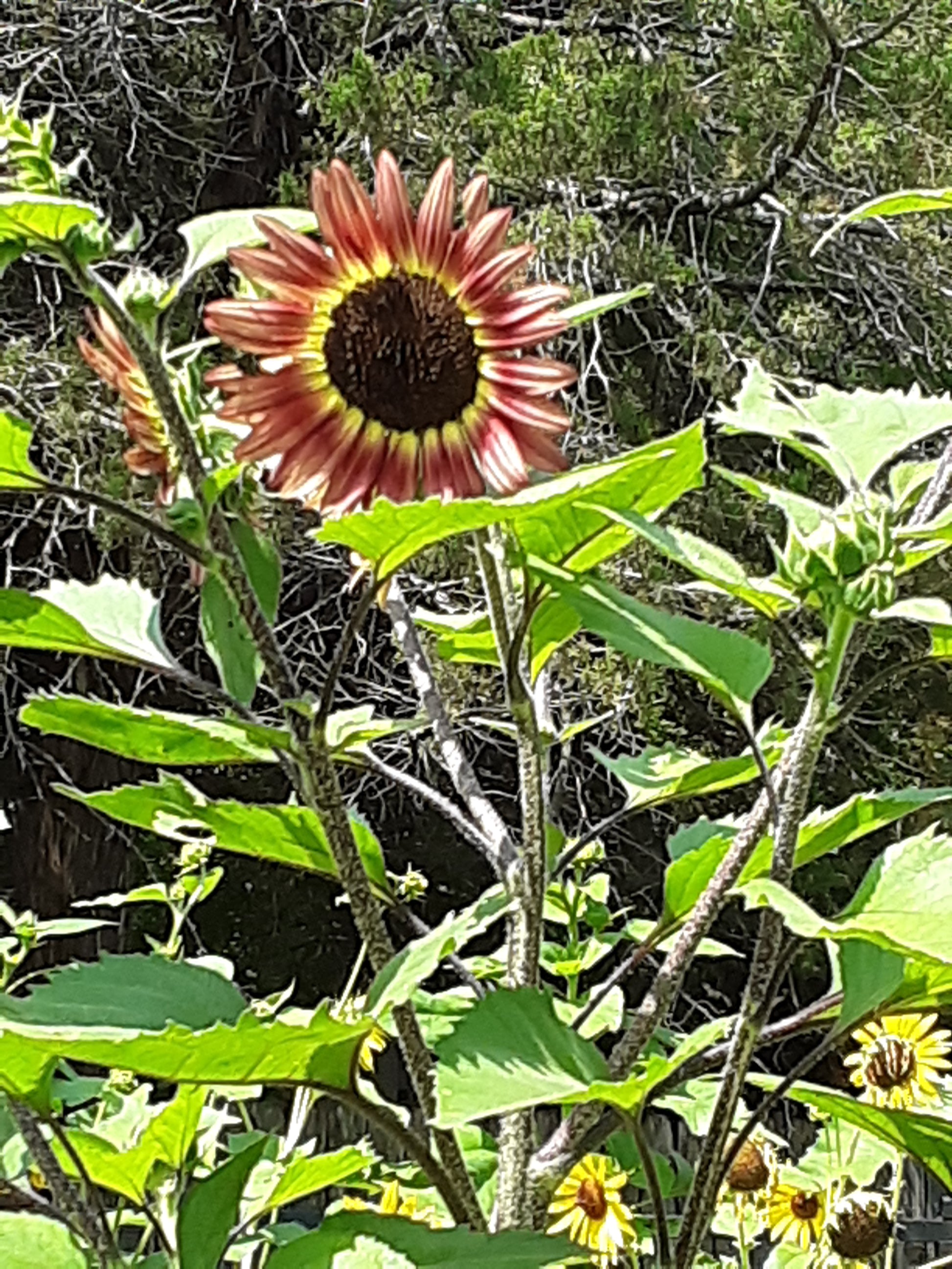 These Sunflowers are so beautiful; petals leading from the head is a shade of yellow and begin to turn a burgundy shade. It is a multi-branching plant. Grown from seeds, this annual produces blooms that measure 6 to 8 inches in diameter. It grows a single stalk and then begins to send out side shoots with blooms that seem to be a bit smaller than the first bloom.