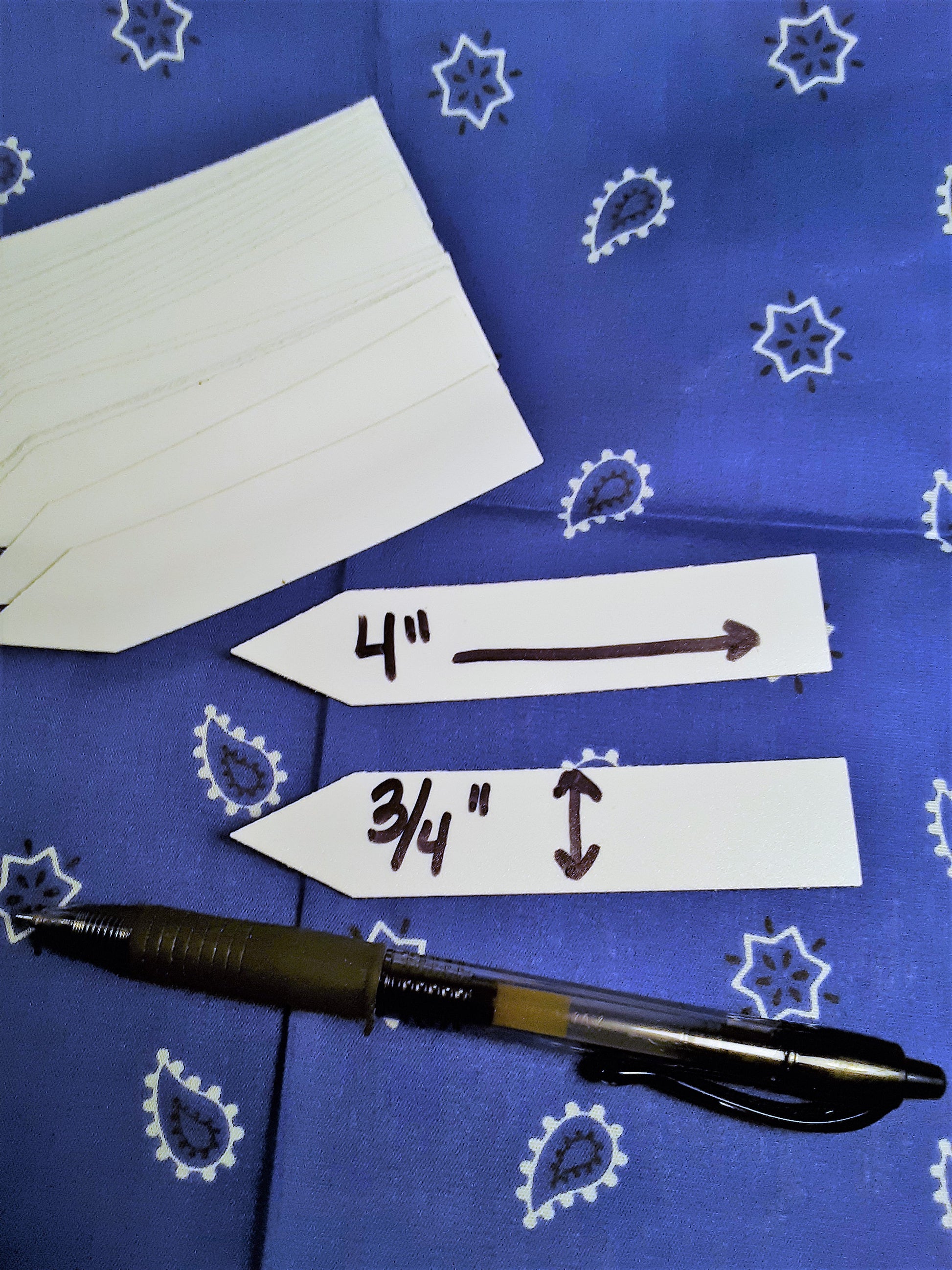 White 4" skinny nursery plant markers, 4" long x 3/4" wide.